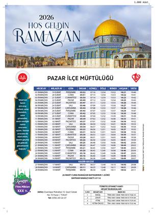 2026 YILI RAMAZAN İMSAKİYESİ