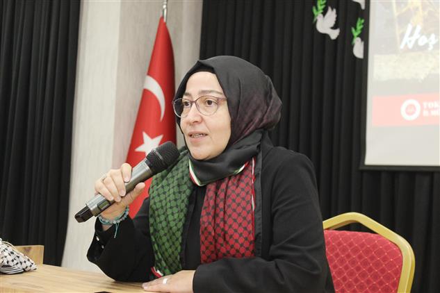 Etkinliğin konuğu Küresel Sumud Filosu Aktivisti Semanur Sönmez Yaman, filonun Gazze’ye yolculuk serüvenini katılımcılarla paylaştı. Yaman, filoya katılabilmek için aldığı eğitimleri ve ulusal medyada Gazze’de yaşanan katliamların algısının nasıl organize edildiğini anlatarak, bu süreçte karşılaştıkları zorluklara değindi. Anlatımı katılımcılardan büyük ilgi gördü.