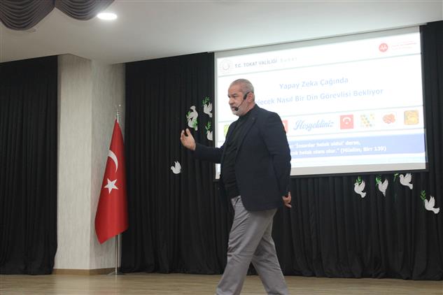 Tokat Valiliği ve Tokat İl Müftülüğü tarafından düzenlenen “Yapay Zekâ Çağında Gelecek: Nasıl Bir Din Görevlisi Bekliyor?” konulu konferans, Karşıyaka GOP Merkez Camii M. Emin Saraç Konferans Salonu’nda 20:15'te gerçekleştirildi.