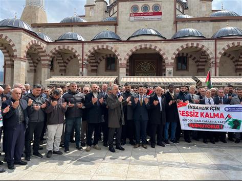 Tokat’ta Milli İrade Platformu üyeleri, İsrail’in “İdam Yasası”na cuma namazı sonrası düzenledikleri basın açıklamasıyla tepki gösterdi.