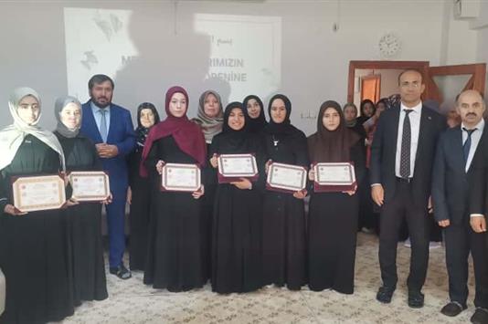 Kaymakam Ersin Tepeli, Camiler ve Din Görevlileri Haftası nedeniyle İlçemiz Nene Hatun Kız Kur'an Kursunu ziyaret edip, 2025 yılı içerisinde hafızlıklarını tamamlayıp belgelerini almaya hak kazanan öğrencilerimizin Hafızlık Belgelerini takdim etti
