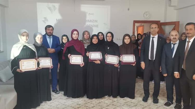 Kaymakam Ersin Tepeli, Camiler ve Din Görevlileri Haftası nedeniyle İlçemiz Nene Hatun Kız Kur'an Kursunu ziyaret edip, 2025 yılı içerisinde hafızlıklarını tamamlayıp belgelerini almaya hak kazanan öğrencilerimizin Hafızlık Belgelerini takdim etti