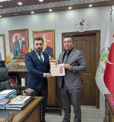 İlçe Müftümüz Murat DARILMAZ, Belediye Başkanımız Sayın Muhsin YILMAZ'ı makamında ziyaret etti. Müftümüz, Başkan YILMAZ'a ilçemizdeki din hizmeleri ve hizmet kalitesini geliştirmede geçmişteki ve şimdiki desteklerinden dolayı teşekkür etti, Diyanet İşleri Başkanlığımızın Mevlidi Nebi tema kitapları "Hz. Peygamber ve Aile Ahlakı" ve "Yuva" adlı kitapları takdim etti.